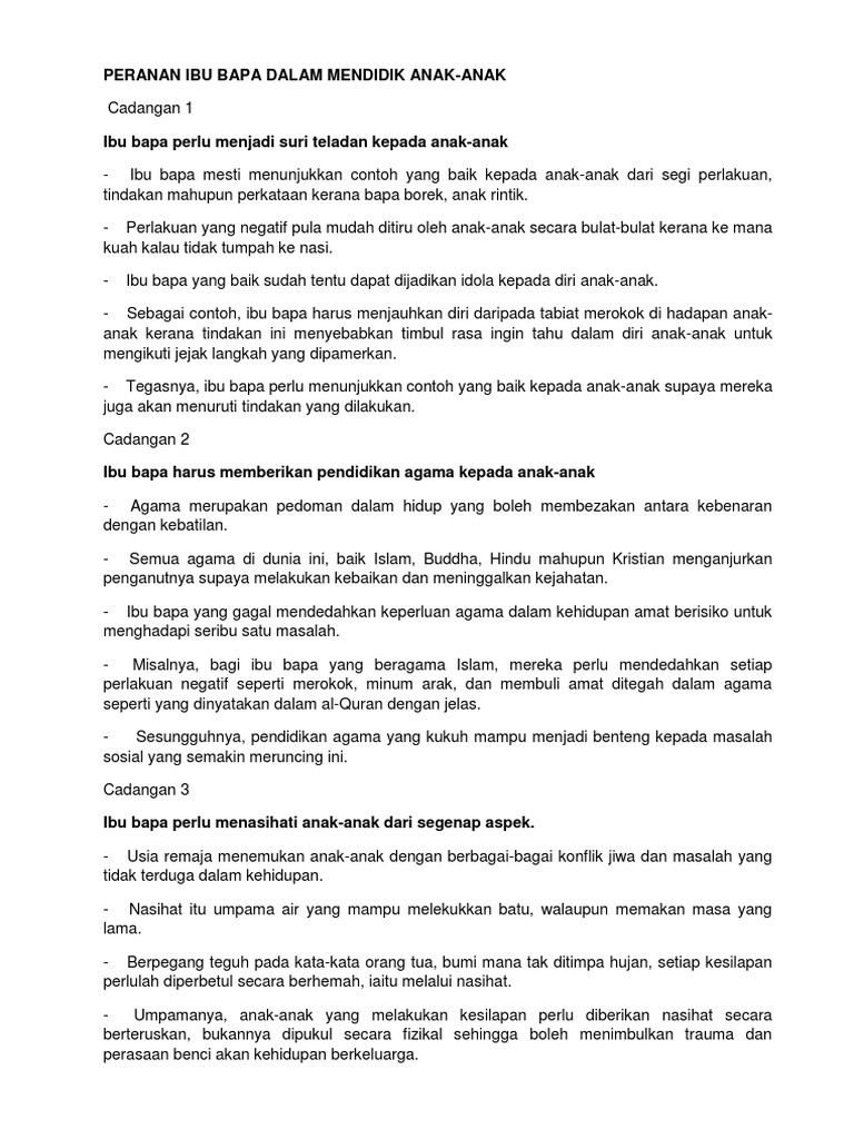 Karangan Peranan Ibu Bapa Dalam Mendidik Anak Pdf
